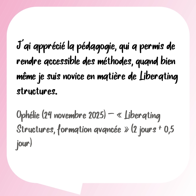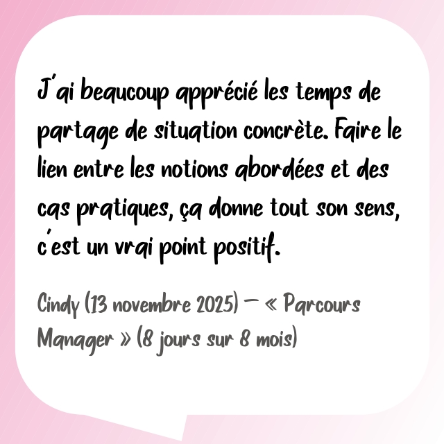 Calculez le nombre d'années d'expérience réunies dans un groupe de 10 participants à une formation ! Et on passerait à côté ?! Chaque notion abordée est traitée collectivement pour permettre à chacun d'établir le lien avec son expérience et la confronter à celle des autres. Nous utilisons la Facilitation Graphique pour des contenus co-construits avec les participants.